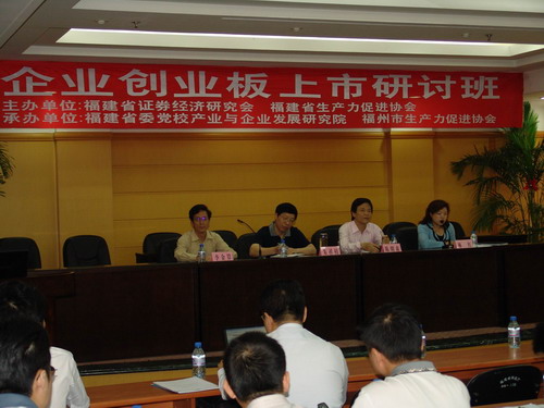 為貫徹落實《國務(wù)院關(guān)于推進(jìn)資本市場改革開放和穩(wěn)定發(fā)展的若干意見》和《福建省人民政府關(guān)于加快推進(jìn)企業(yè)上市的意見》精神,5月13日上午,福建省證券經(jīng)濟研究會、福建省生產(chǎn)力促進(jìn)協(xié)會主辦,福建省委黨校產(chǎn)業(yè)與企業(yè)發(fā)展研究院、福州市生產(chǎn)力促進(jìn)協(xié)會承辦,在福州舉辦“企業(yè)創(chuàng)業(yè)板上市研討班”。有關(guān)科技園區(qū)、創(chuàng)業(yè)中心的領(lǐng)導(dǎo)及60多家企業(yè)負(fù)責(zé)人共約100多人參加了研討班。研討班由福建省委黨校產(chǎn)業(yè)與企業(yè)發(fā)展研究院副院長林紅教授主持,福建省委黨校產(chǎn)業(yè)與企業(yè)發(fā)展研究院院長陳明森教授,福建省生產(chǎn)力促進(jìn)中心主任朱祥枝博士,福建省生產(chǎn)力促進(jìn)協(xié)會秘書長、福建省生產(chǎn)力促進(jìn)中心副主任李金算研究員出席了研討會開班儀式。李金算秘書長代表福建省生產(chǎn)力促進(jìn)協(xié)會致辭。