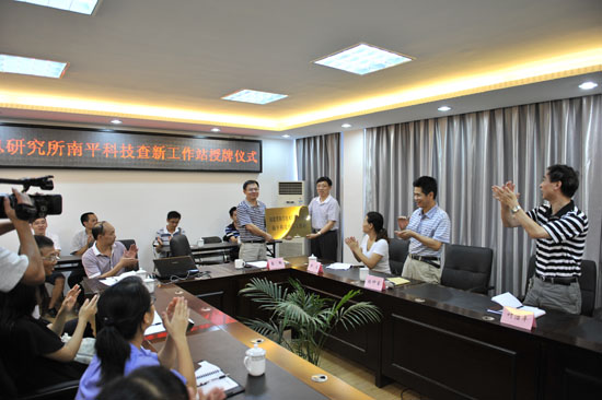 省科技信息所所長、研究員朱祥枝為“南平科技查新工作站”授牌。南平市科技局葉治平局長、張仲甫副局長、南平市科技情報(bào)研究所翁翹所長以及省科技信息所業(yè)務(wù)管理科科長王良熙、檢索查新室主任洪凡等參加了授牌儀式。