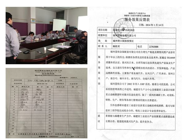 福州萱裕公司屬東南汽車配套廠,于2002年應(yīng)東南汽車要求導(dǎo)入ERP系統(tǒng),目前已在廣州、鄭州、武漢、大連四個城市設(shè)立分工廠。隨著公司的發(fā)展,原來的管理流程已不適用。福建省工業(yè)設(shè)計產(chǎn)業(yè)創(chuàng)新戰(zhàn)略聯(lián)盟,受福州萱裕金屬委托,為其公司ERP系統(tǒng)做體檢。我聯(lián)盟于8月份開始通過走訪、調(diào)研等方式對萱裕公司各部門做全方位診斷及分析,并提供診斷報告。福州萱裕根據(jù)診斷報告做了相應(yīng)的整改,如業(yè)務(wù)流程的重新梳理、ERP升級優(yōu)化以及SOP手冊的建檔。經(jīng)過4個多月的調(diào)整及流程改造,萱裕公司的管理有了很大的提升,據(jù)萱裕管理部門統(tǒng)計:1. 公司庫存下降43.3%。2.延期交貨減少81.2%。3.采購提前期縮短50%。4.停工待料減少70%。5.制造成本降低13.5%。6.管理水平提高,生產(chǎn)能力提高12%。