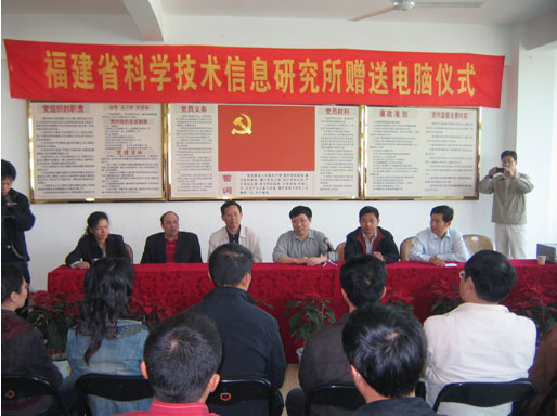 為支持基層科技信息化工作的開展,2008年11月20日,省科技信息研究所向漳浦縣科技局捐贈(zèng)電腦儀式在漳浦縣科技局舉行。省科技信息研究所所長(zhǎng)、研究員朱祥枝同志代表福建省科技信息研究所,向漳浦縣科技局贈(zèng)送10臺(tái)電腦,用于支持漳浦縣科技局培訓(xùn)中心建設(shè)。