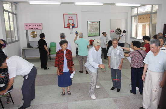此次活動報名人數(shù)近100人,占全所離退休職工總數(shù)的88%。共設(shè)有投籃、套圈等7個比賽項目,有近250人次參賽。老同志興高采烈,熱情高漲,活動現(xiàn)場氣氛熱烈活躍,每個項目的達標(biāo)和得分都引來大家的歡呼與掌聲,精彩的比賽充分展示了老同志老當(dāng)益壯、永葆活力的精神風(fēng)貌,體現(xiàn)了老同志積極樂觀、健康向上的生活態(tài)度。比賽之余,大家重逢敘舊,相互交流溝通,現(xiàn)場寬松有序,歡樂和諧。大家紛紛感謝所領(lǐng)導(dǎo)為老同志著想,確保福利待遇不變,并為老同志的退休生活創(chuàng)造了這么好的活動場所,組織了這樣有意義的健身活動,讓老同志老有所樂。3天的比賽活動獲得了圓滿成功,深受全體離退休老同志的好評。