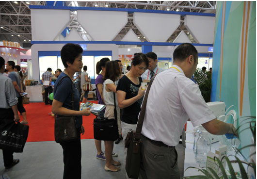 參觀者現(xiàn)場品嘗體驗“能量水”