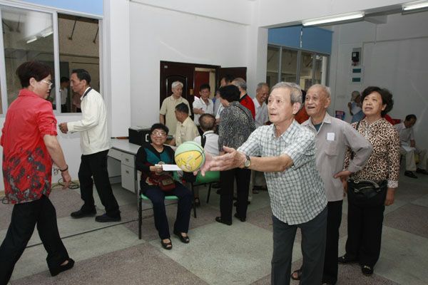 老同志參加投籃活動(dòng)