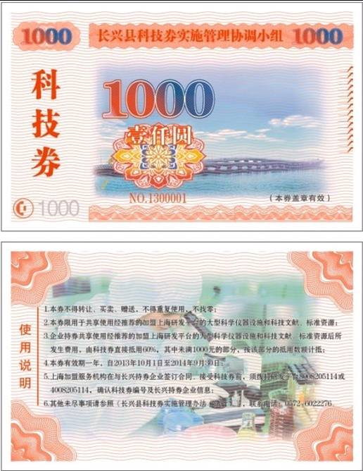 圖注:該科技券是鼓勵長興地區(qū)企業(yè)共享使用上海地區(qū)的大型科學儀器設(shè)施和科技文獻、標準資源,為當?shù)仄髽I(yè)開展新技術(shù)、新產(chǎn)品、新工藝和新材料的研制開發(fā)等科技創(chuàng)新活動設(shè)計發(fā)放的,由長興縣財政部門兌現(xiàn)的一種“有價證券”。詳見:http://cx.sgst.cn/web/changxing/changxing_index.html