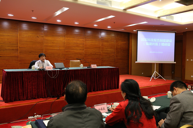 2014年11月21日上午,國(guó)家科技報(bào)告(福建片區(qū))培訓(xùn)會(huì)在福州舉行。福建省承擔(dān)“十二五”國(guó)家973計(jì)劃、863計(jì)劃、科技支撐計(jì)劃項(xiàng)目(課題)的負(fù)責(zé)人、主要研究人員、項(xiàng)目承擔(dān)單位科技管理人員和廳、各設(shè)區(qū)市科技局、平潭綜合實(shí)驗(yàn)區(qū)社會(huì)事業(yè)局科技管理人員共200多人參加了培訓(xùn)會(huì)。