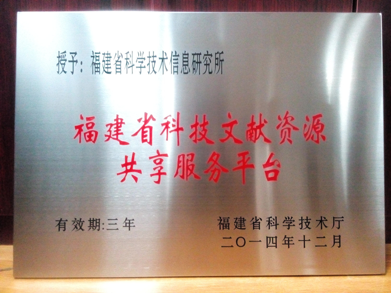 根據(jù)《福建省科學(xué)技術(shù)廳關(guān)于公布2014年省級企業(yè)工程技術(shù)研究中心及科技公共服務(wù)平臺評估結(jié)果的通知》(閩科計〔2014〕57號),我所建設(shè)的福建省科技文獻資源共享服務(wù)平臺通過省科技廳組織的省級科技公共服務(wù)平臺評估,是本次通過評估的4個省級科技公共服務(wù)平臺之一,并于近日獲省科技廳正式授牌。