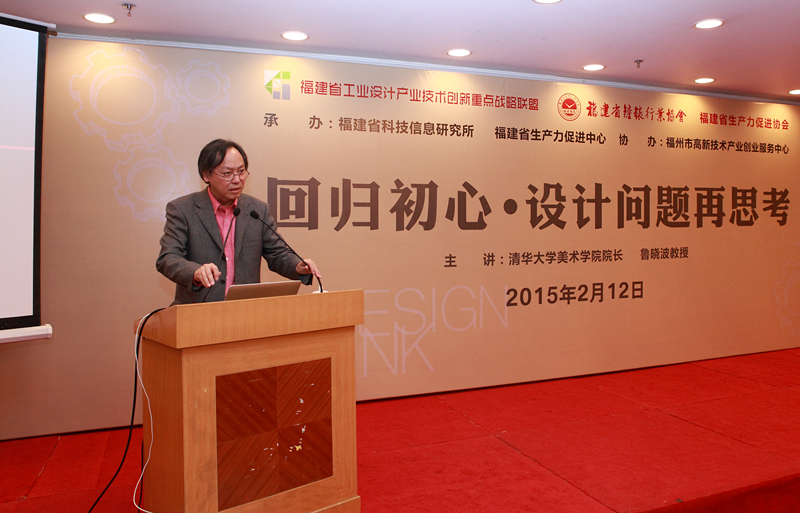 2015年2月12日,應(yīng)福建省工業(yè)設(shè)計產(chǎn)業(yè)技術(shù)創(chuàng)新重點戰(zhàn)略聯(lián)盟、福建省鐘表行業(yè)協(xié)會、福建省生產(chǎn)力促進協(xié)會聯(lián)合邀請,清華大學(xué)美術(shù)學(xué)院院長、中國工業(yè)設(shè)計協(xié)會副會長、國際工業(yè)設(shè)計“紅點”獎評委、博士生導(dǎo)師魯曉波教授,在福建會堂泉州廳作了題為“回歸初心——設(shè)計問題再思考”的專題講座。福建省生產(chǎn)力促進中心書記高一真、福建省鐘表協(xié)會會長蔣莘為大會致辭,福建省工業(yè)設(shè)計產(chǎn)業(yè)技術(shù)創(chuàng)新重點戰(zhàn)略聯(lián)盟成員代表和來自全省各地相關(guān)高校、研究所、科技服務(wù)機構(gòu)、企業(yè)家及工業(yè)設(shè)計精英等150多人參加了講座。