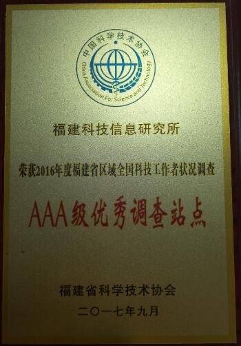 12月20日,省科協(xié)組織召開了2017年度福建省全國(guó)科技工作者狀況調(diào)查站點(diǎn)會(huì)議,對(duì)2016年度福建省優(yōu)秀調(diào)查站點(diǎn)進(jìn)行通報(bào)表彰。我所獲2016年度福建省區(qū)域全國(guó)科技工作者狀況調(diào)查AAA級(jí)優(yōu)秀調(diào)查站點(diǎn)。至此,我所已連續(xù)四年獲省科技工作者優(yōu)秀調(diào)查站點(diǎn)。此外,我所站點(diǎn)還獲得了“優(yōu)秀信息員”推薦資格與“優(yōu)秀調(diào)查員”推薦資格。