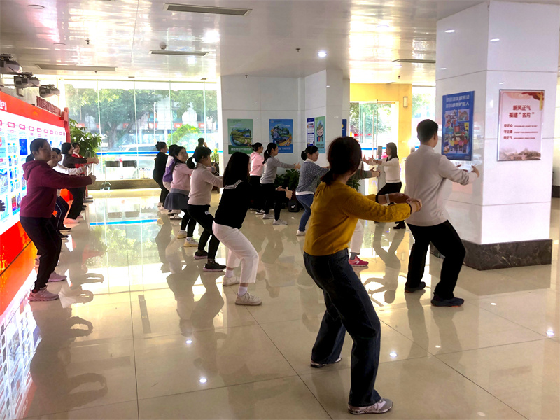活動吸引了眾多職工的積極參與。在福建體育職業(yè)技術(shù)學(xué)院老師專業(yè)且生動的授課中,大家迅速掌握了動作精髓,在練習(xí)過程中相互學(xué)習(xí)、相互鼓勵,形成了良好的團(tuán)隊氛圍。活動結(jié)束后,參與職工紛紛表示,不僅在運(yùn)動中體驗到了傳統(tǒng)健身文化的魅力,還充分感受到八段錦帶來的身心愉悅和健康生活的重要性,適當(dāng)?shù)腻憻捴竽芤愿语枬M的精神狀態(tài)投入工作。