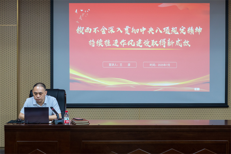 7月18日,所黨總支組織委員、第三黨支部書記、副所長王彥以《鍥而不舍深入貫徹中央八項規(guī)定精神持續(xù)推進(jìn)作風(fēng)建設(shè)取得新成效》為題,為其所在支部黨員及分管部門的干部職工上了一堂深刻而生動的黨課。
